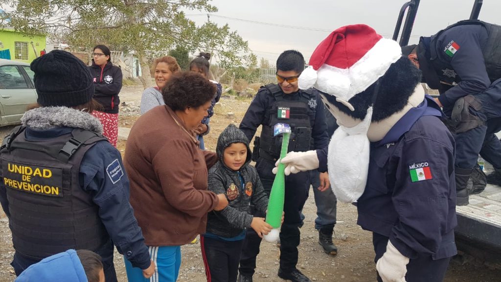 Gabriela Franyutti García, coordinadora de la Unidad de Prevención del Delito de la policía, informó que en conjunto con elementos hicieron entrega de juguetes en las colonias La Gloria, San Vicente, la Palma y Las Margaritas.