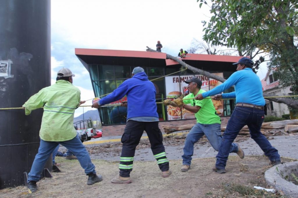 La dirección de Medio Ambiente y Espacios Urbanos atendió los 16 reportes de árboles caídos, mismos que fueron removidos por personal de esa dependencia municipal.