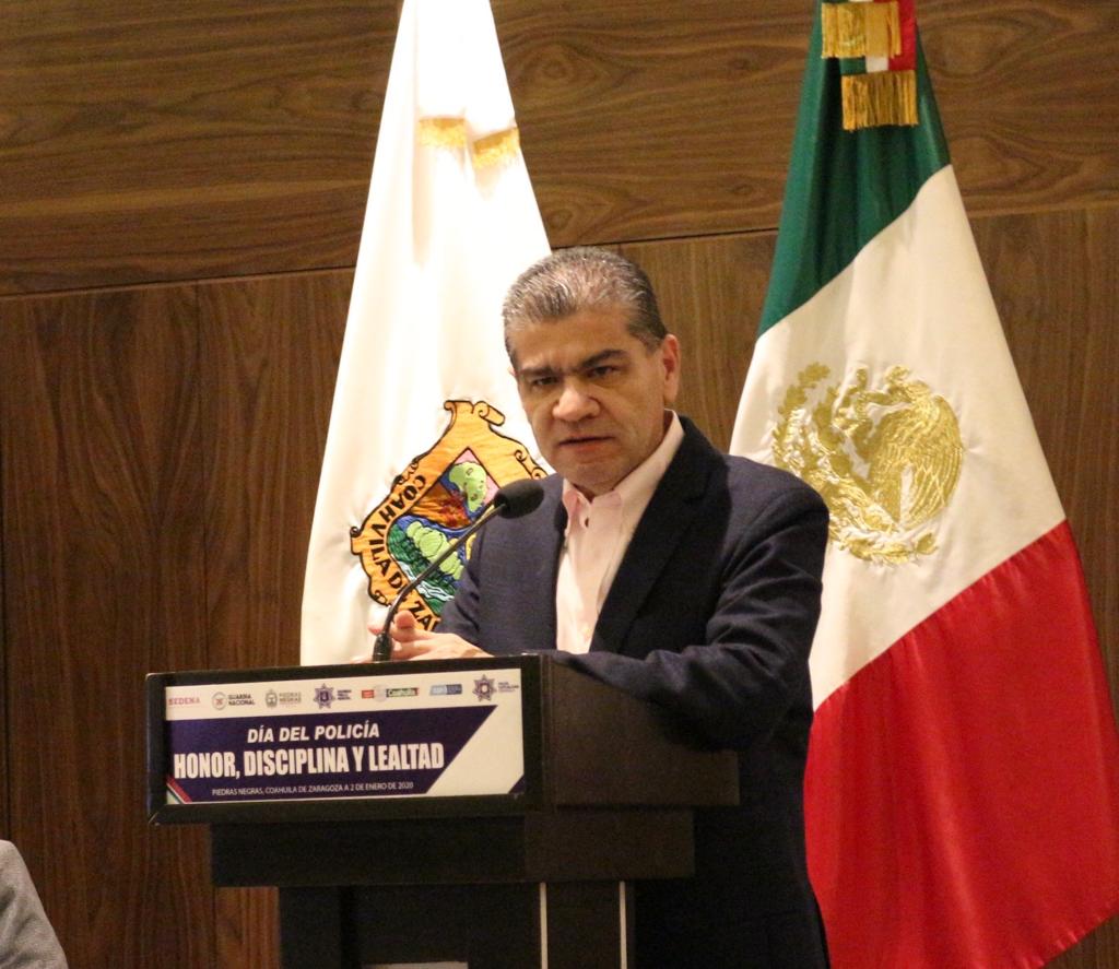 Piedras Negras, Coahuila.- Desde Piedras Negras, el gobernador Miguel Ángel Riquelme Solís reconoció a las fuerzas de seguridad y del orden como uno de los ejes más importantes en las políticas públicas, y que en el caso de Coahuila el modelo desarrollado en los últimos 2 años es ejemplo a nivel nacional.