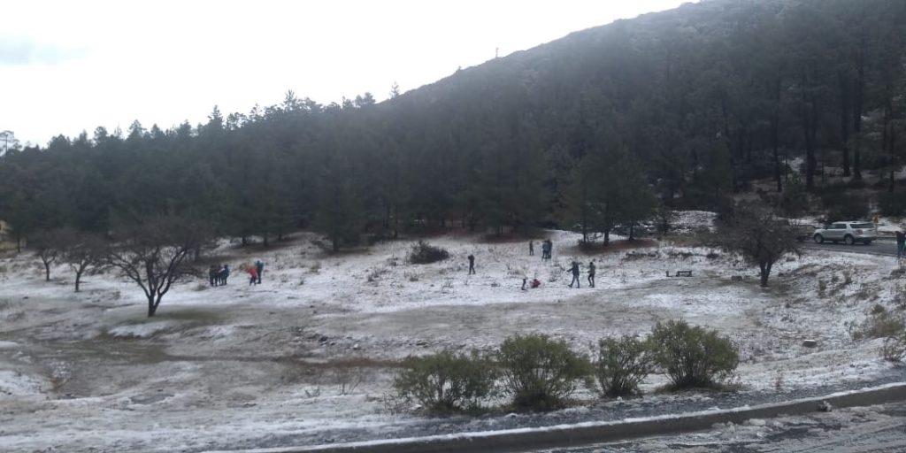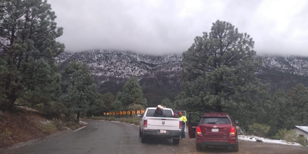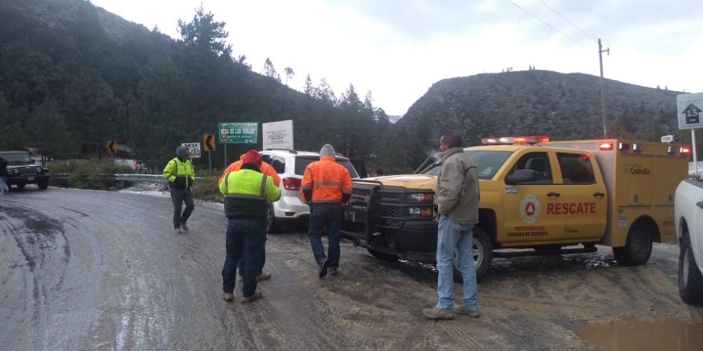 Arteaga.- Elementos de la Sub Secretaría de Protección Civil del Estado, así como de Protección Civil municipal, se presentaron en la comunidad conocida como Mesa de las Tablas, de este municipio, ante la presencia de agua nieve que se registró desde temprano en este lugar.