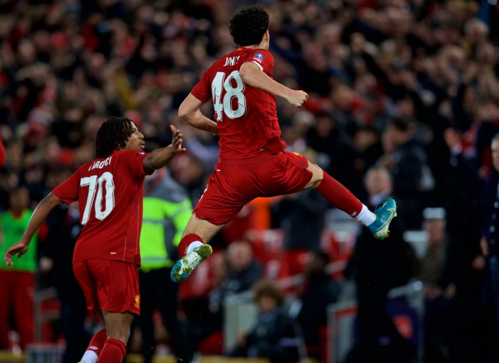 Jones, de 18 años de edad y quien había jugado pocos minutos en la Premier League, recibió un balón de Divock Origi por banda izquierda y desde fuera del área sacó un disparo que pegó en el travesaño y luego en el poste izquierdo para vencer al guardameta Jordan Pickford y sellar el triunfo 1-0.