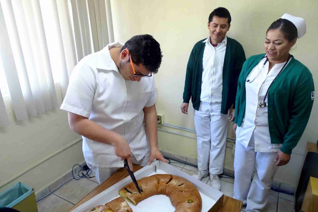 Este lunes personal del DIF en Ramos Arizpe encabezados por Jorge Gutiérrez Padilla y el responsable de la dirección de Salud, Luis Humberto Valdez Rodríguez visitaron distintas unidades de medicina familiar y nosocomios de la localidad para celebrar el día de la enfermera, festejo que, sumado a la celebración por la llegada de los Reyes Magos, se ofreció rosca de reyes a los festejados en su día.