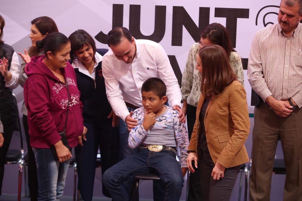 “Aquí se marca un antes y un después, donde gracias al trabajo en equipo entre sociedad y gobierno estamos cambiando la vida de tres niñas y niños saltillenses que van a poder realizarse de una mejor manera, gracias a todos por su solidaridad para poder juntar el dinero para las operaciones, que en el mercado andan arriba de los 500 mil pesos”, dijo.