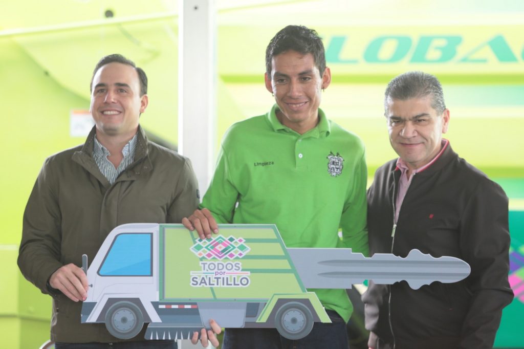 Al reiterar el compromiso de su Administración con la preservación del medio ambiente, el gobernador Miguel Ángel Riquelme Solís entregó junto al alcalde de Saltillo, Manolo Jiménez Salinas, 6 camiones recolectores de basura, una barredora y 5 cajas compactadoras, a Servicios Públicos del Municipio, con un valor superior a 22 millones de pesos.