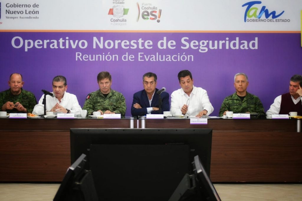 Apodaca, Nuevo León.- Con la finalidad de evaluar los resultados en 2019 del llamado “Operativo Noreste” y plantear nuevas estrategias a seguir, este día los gobernadores de Coahuila, Nuevo León y Tamaulipas tuvieron la primera reunión de trabajo de este 2020, que se llevó a cabo en las instalaciones de la Séptima Zona Militar.