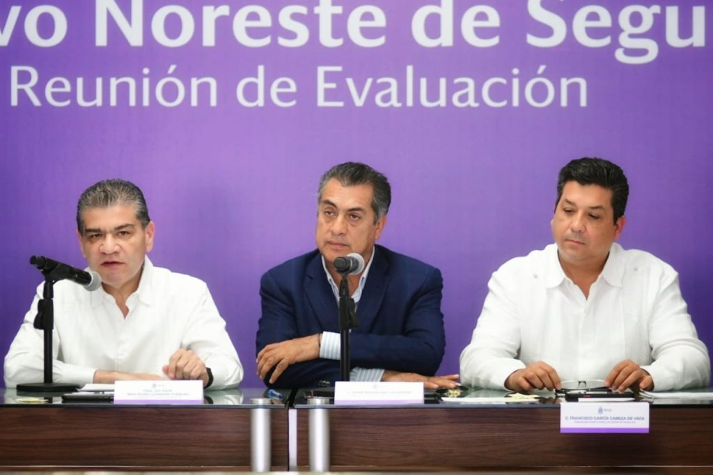 Miguel Ángel Riquelme Solís, gobernador Coahuila; Jaime Rodríguez Calderón, gobernador de Nuevo León, y Francisco García Cabeza de Vaca, gobernador de Tamaulipas, así como los Gabinetes de Seguridad de los tres estados participaron en esta mesa de trabajo.