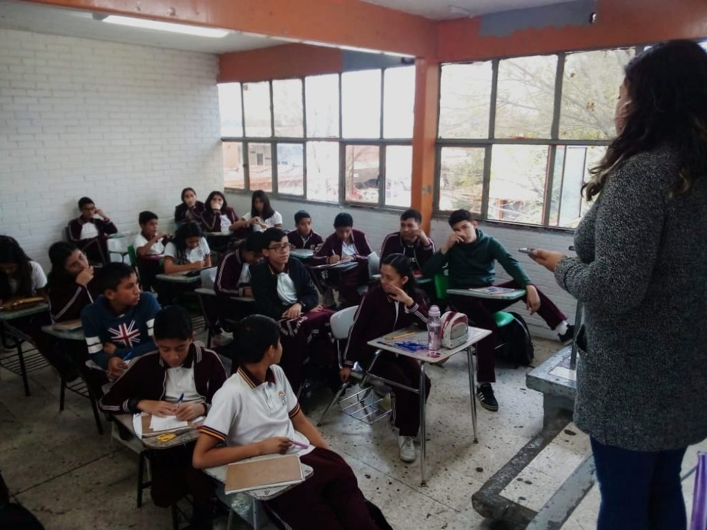 La psicóloga del CJEM Frontera, Sarai Muñoz Morán, explicó que se impartió esta plática preventiva a los alumnos de la Escuela Secundaria General No. 1 “Héroes de Nacozari” en esta ciudad, con el tema “Violencia en el Noviazgo”.