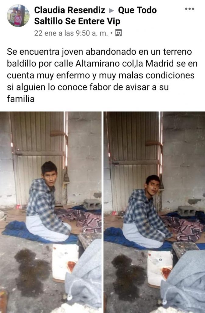 Y es que fue apenas el pasado miércoles cuando a través de redes sociales ciudadanos solicitaron ayuda para el adolescente a quien ubicaron en deplorables condiciones a las afueras de unas tapias de la calle Altamirano en la colonia La Madrid.