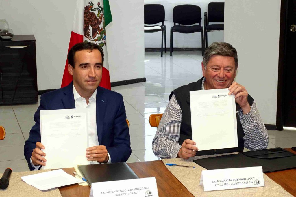 El Clúster de Energía Coahuila A.C. y la Asociación de industriales y Empresarios de Ramos Arizpe (AIERA) encabezados por el doctor Rogelio Montemayor Seguy y Mario Ricardo Hernández Saro respectivamente, firmaron este miércoles un convenio de colaboración que permitirá al clúster energético poder trabajar de la mano con los empresarios afiliados a la AIERA en la práctica de métodos eficientes para aumentar la productividad en las empresas