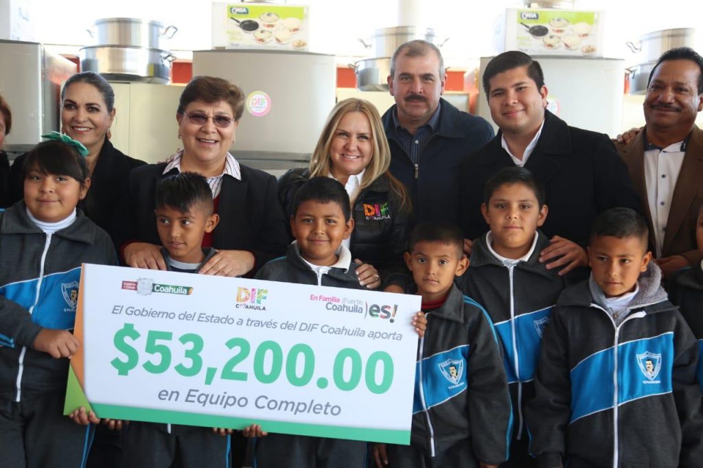 En la Escuela Secundaria “Josefa Ortiz de Domínguez”, del Ejido San Lorenzo, junto a la Alcaldesa de este municipio, Patricia Oralia Grado Falcón; la coordinadora de Servicios Educativos en la Región Laguna, Flor Estela Rentería Medina; Roberto Cárdenas Zavala, Director General del DIF Coahuila, y frente a docentes, padres de familia y alumnos beneficiados se llevó a cabo esta entrega de apoyos del programa Cocinas Populares y Unidades de Servicios Integrales (COPUSI), que fortalece la operación de “Mi Fortidesayuno”, para asegurar la sana nutrición de las y los niños coahuilenses.