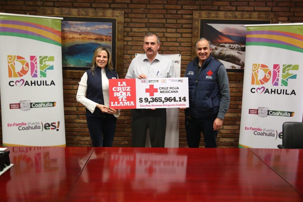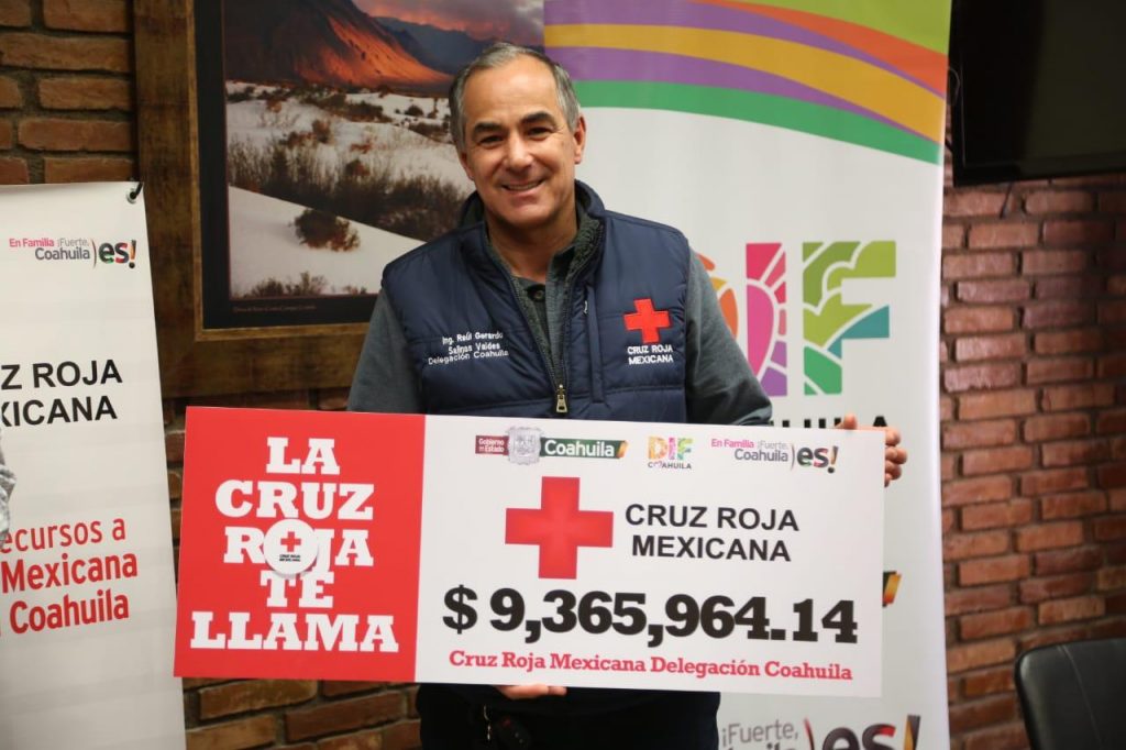 En cumplimiento al compromiso del gobernador Miguel Riquelme Solís y Marcela Gorgón, Presidenta Honoraria del DIF Coahuila, con la humanitaria institución de la Cruz Roja, la Delegación en Coahuila recibió 33 millones 760 mil 412 pesos derivado de las aportaciones de los coahuilenses en el pago del derecho de control vehicular y plaqueo 2019.