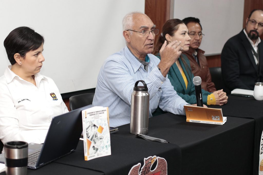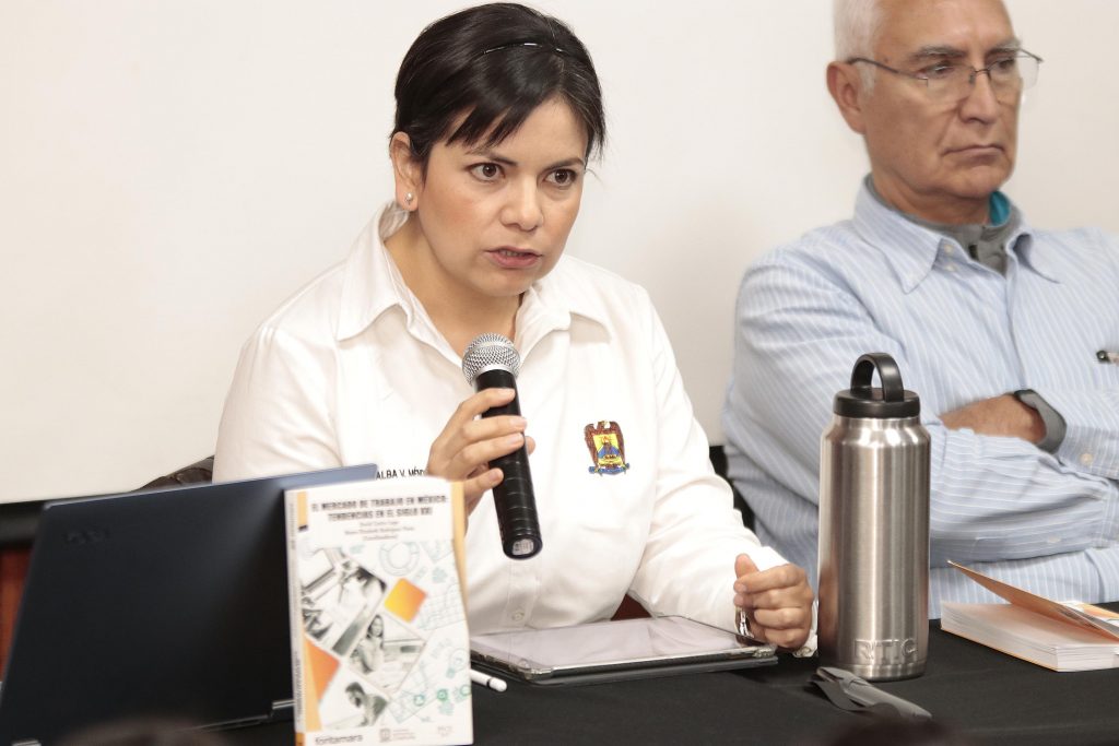 Durante la presentación, la Dra. Verónica Méndez señaló que los capítulos del libro están enfocados en casos de estudio recientes, realizados por investigadores y estudiantes de la Facultad de Economía, que concluyeron en propuestas para mejorar las políticas públicas en el ámbito laboral, orientadas a la garantía de prestaciones, bienestar de los trabajadores y mayor productividad.