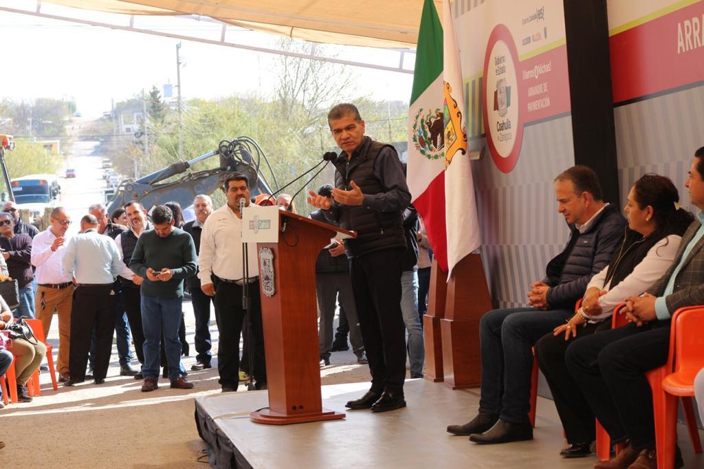 Acuña, Coahuila.- Con inversión bipartita entre Estado y Municipio, el gobernador Miguel Ángel Riquelme Solís dio el banderazo de arranque de la obra de pavimentación de 12 cuadras en la Calle 15, de la Colonia Carmen Sumarán, en Acuña, con inversión de 19.6 millones de pesos.