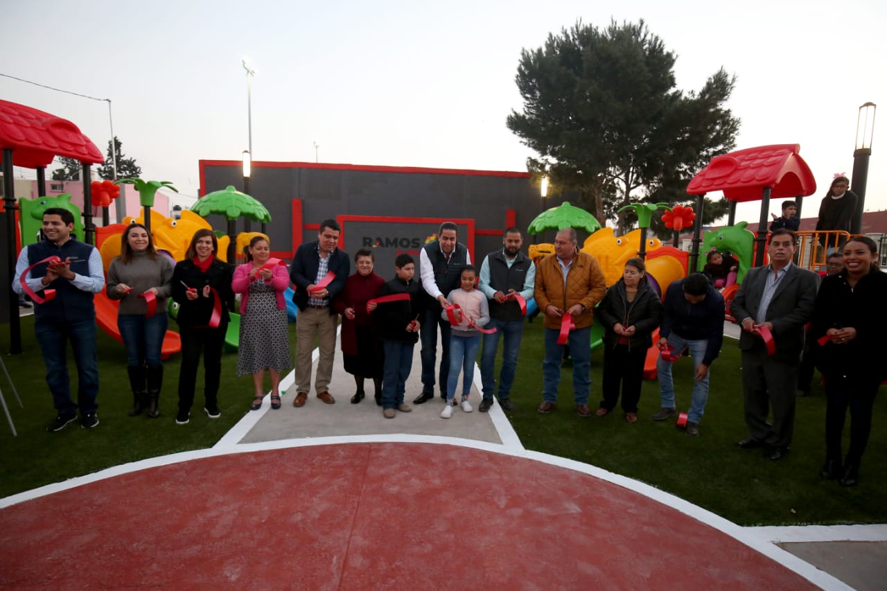 «Esta plaza antes era una boca de lobo, solo tenía dos luminarias y no se veía nada, ahora tenemos una plaza totalmente remodelada y este tipo de acciones lo hacemos con mucho gusto, porque la gente de Ramos lo merece y así como lo hacemos en la plaza San Antonio, quiero decirles que es la plaza número 10 que entregamos» dijo Morales Padilla.