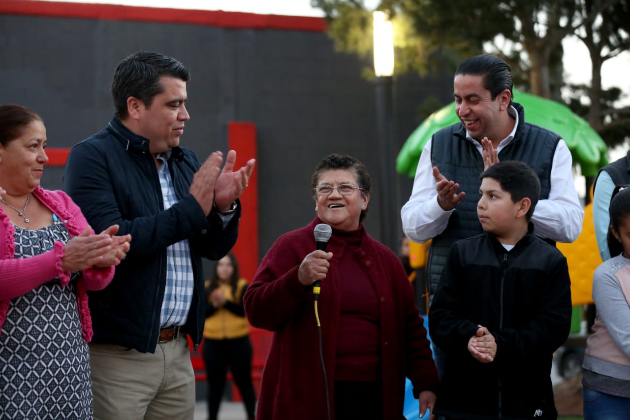 «Le damos gracias a nuestro alcalde Chema Morales y al gobernado Miguel Riquelme que nos han revestido nuestra plaza» agradeció la señora Marcela Sánchez, a nombre los vecinos de la colonia San Antonio. (EL HERALDO)