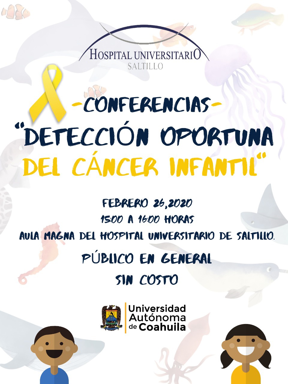 Para conmemorar el Día Internacional del Cáncer Infantil, el Hospital Universitario de la Universidad Autónoma de Coahuila convoca al público en general a asistir a la conferencia “Detección Oportuna del Cáncer Infantil”, que impartirá el Dr. Manuel Arzola, este miércoles 26 de febrero a las 15:00 horas en el Aula Magna del nosocomio.