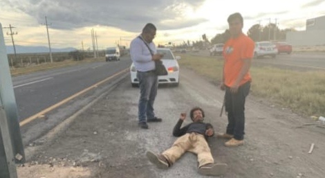 A la altura del kilómetro 13 y con dirección de Saltillo a Monterrey a un lado de la carpeta asfáltica, las autoridades localizaron tirado a un individuo que vestía suéter negro, pantalón caqui y zapatos café.