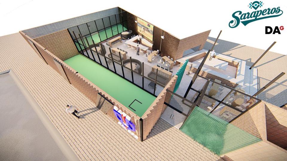 Caja de bateo: Que permita a los aficionados experimentar sensaciones tanto deportivas como de distracción, no solamente durante la temporada, sino todo el año, dicha área contará con dos cajas de bateo, bar y área de alimentos.