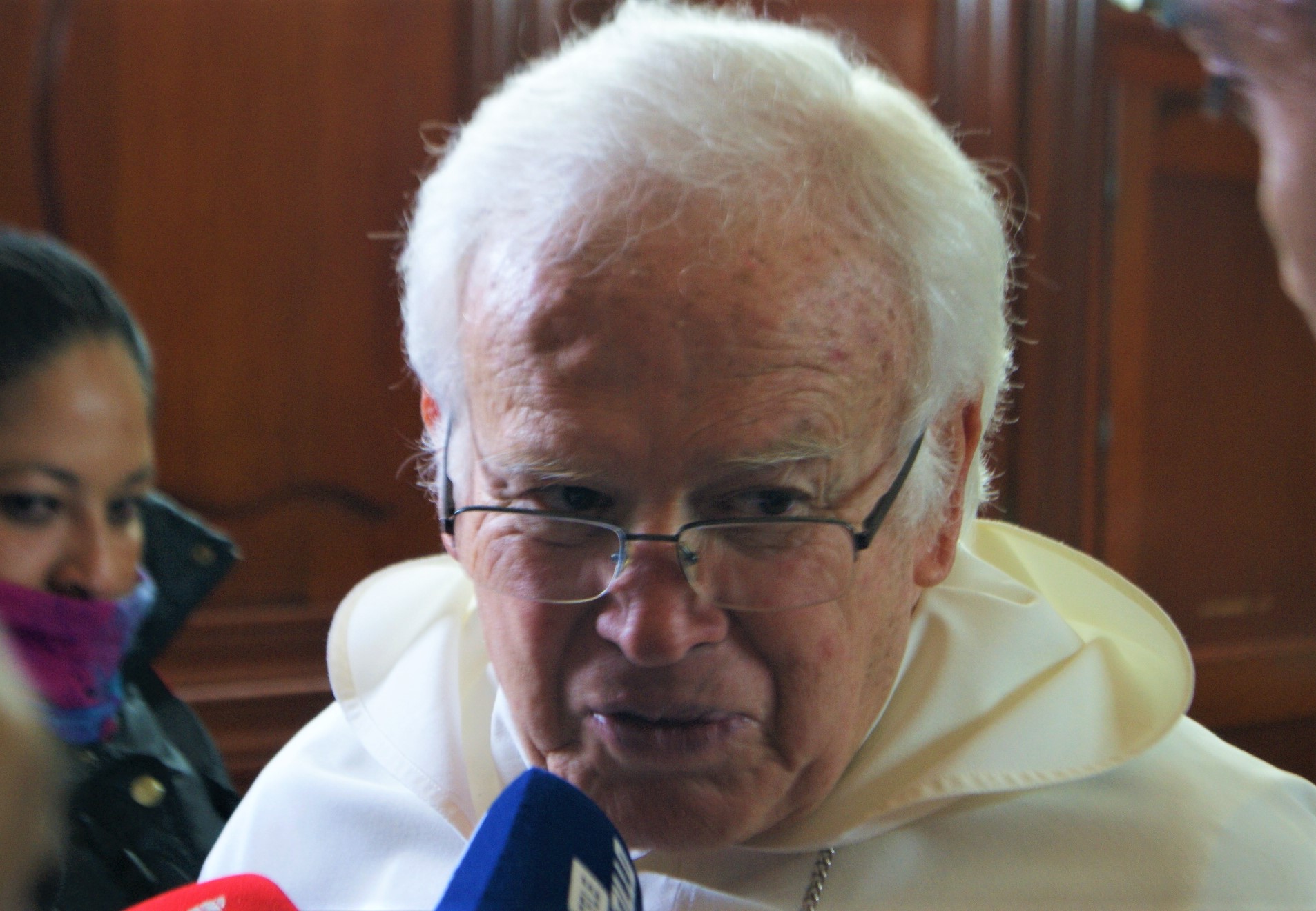 «Jamás nadie me ha pedido que vaya a defender ni me toca a mí intervenir en los procesos judiciales. Ahora resulta que yo soy el que pongo fuera a todos los acusados (…). Ya estuvo bien, qué historias. A nadie he intervenido para que lo saquen, a nadie», comentó para medios, el obispo Raúl Vera López. (OMAR SOTO)