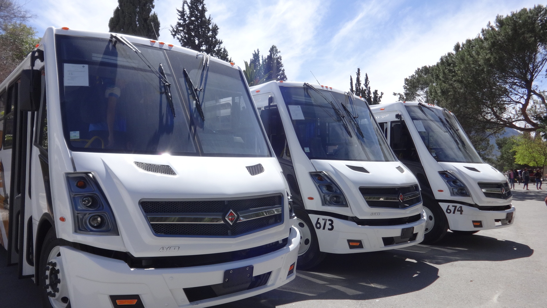 «Hoy (miércoles) también hacemos entrega de 10 autobuses para el transporte estudiantil. Sean ustedes, comunidad universitaria, los agraciados en esta entrega de los autobuses. Esperemos que estos autobuses que entregamos el día de hoy sea en beneficio de ustedes y que el servicio sea de mejor calidad», añadió el rector. (OMAR SOTO)