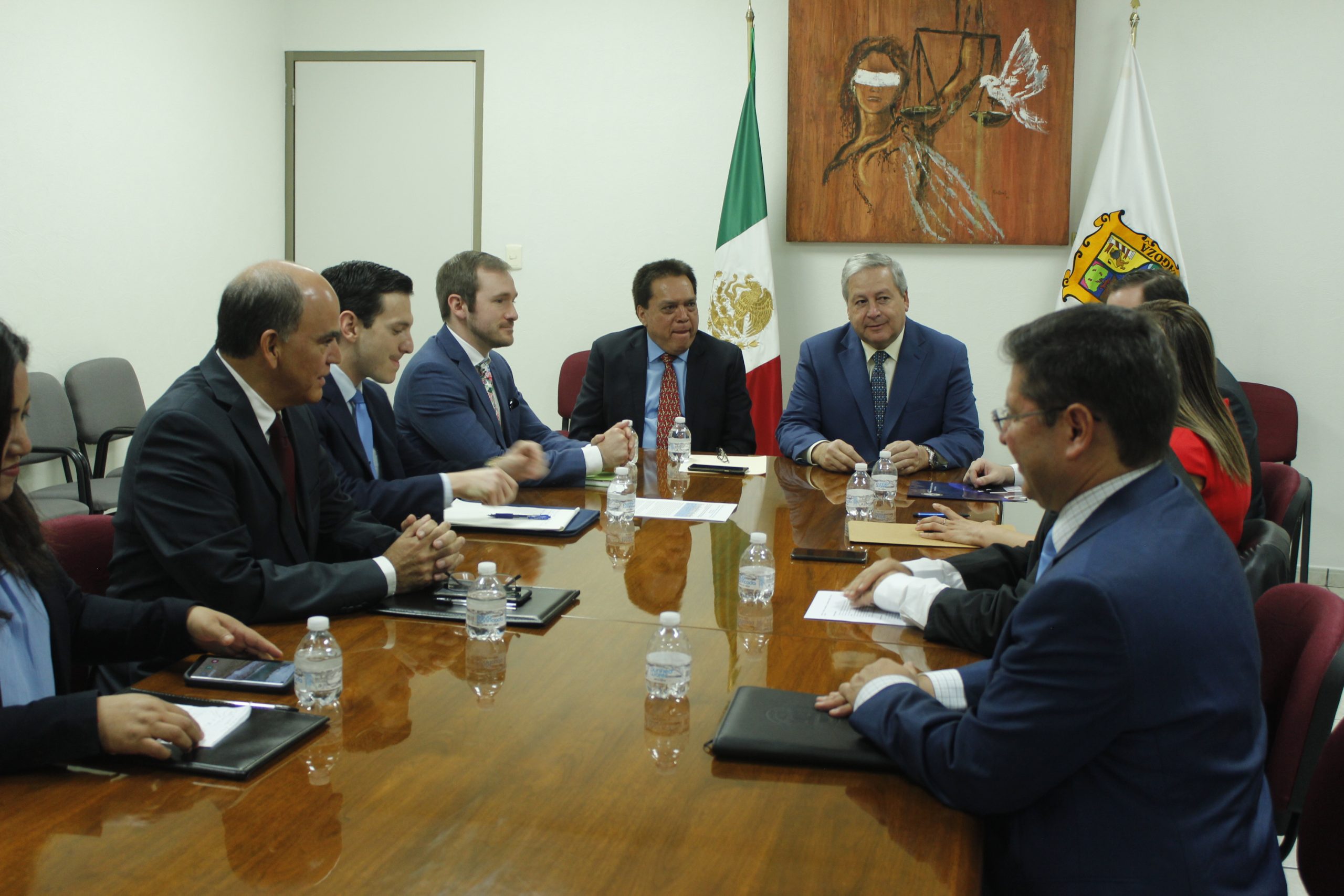 El Fiscal General del Estado, Gerardo Márquez Guevara, recibió de Kyle H. Grimes, Director de ICITAP-MÉXICO; Miguel Óscar Aguilar Ruíz, Director del Programa Forense ICITAP-MX; Joel Christiansen, Director Adjunto de Programas de Investigación Criminal (INL), y Citlali Torres Monreal, especialista de Programas de INL, la acreditación de Calidad Internacional de los laboratorios de Genética y Balística de acuerdo a la norma internacional ISO/IEC 17025:2017.