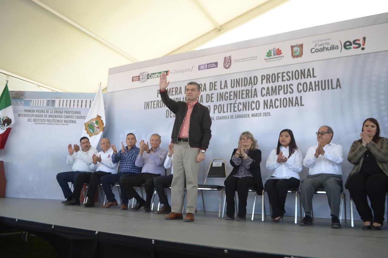 Agradeció el apoyo del Director del Politécnico Nacional, Rodríguez Casas, porque ha depositado la confianza en Coahuila y la Región Centro-Desierto, con una unidad educativa de nivel profesional de gran renombre, que contará con especialidades que demandan dentro de la Tecnología 4.0.