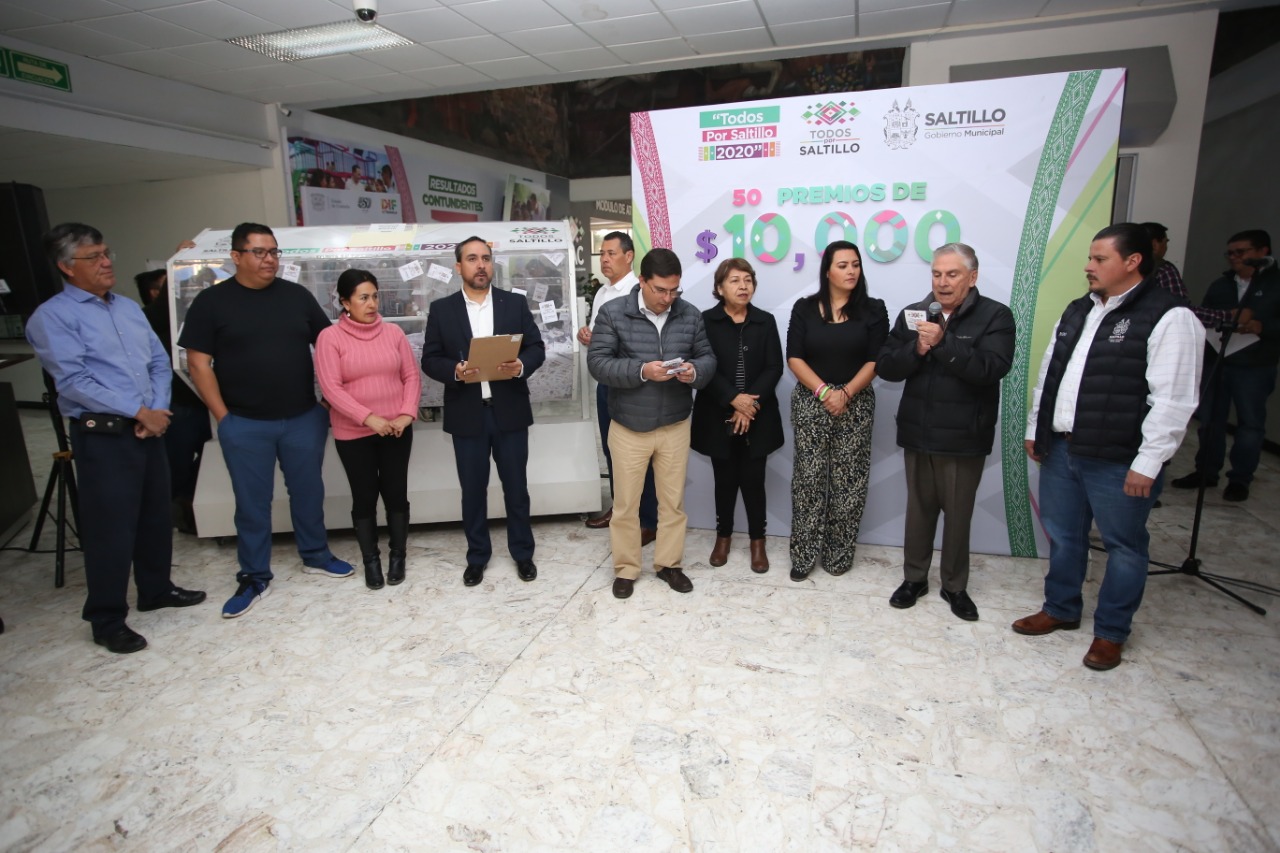 El Gobierno Municipal de Saltillo llevó a cabo el Segundo Sorteo “Todos por Saltillo” 2020, en el que se entregaron 50 premios de 10 mil pesos cada uno; a nombre del alcalde Manolo Jiménez Salinas, el tesorero José Antonio Gutiérrez Rodríguez agradeció a los contribuyentes cumplidos.