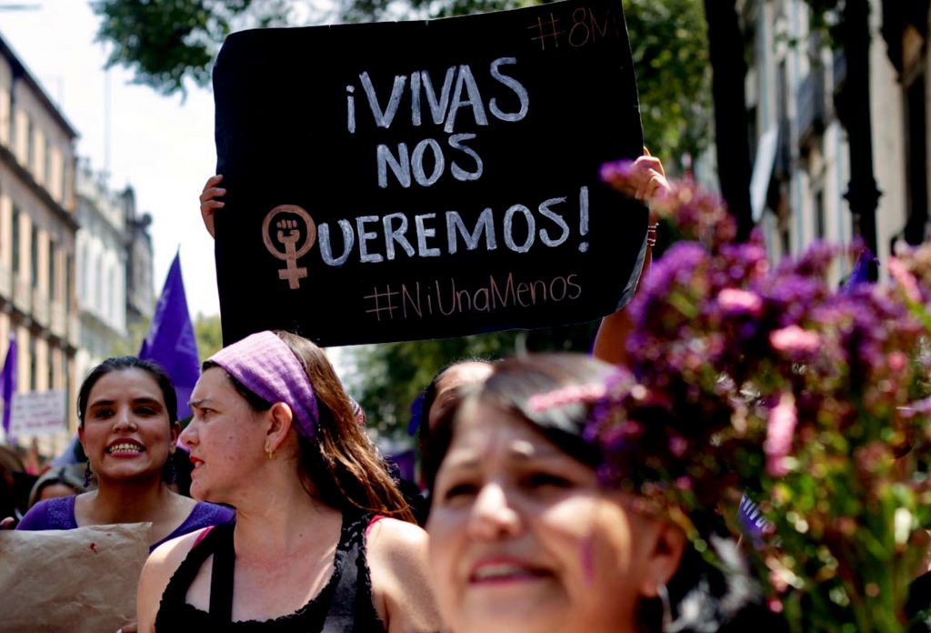 Compañeras de Nadia, participaron en la marcha para conmemorar el Día Internacional de la Mujer, espacio en el que exigieron justicia.