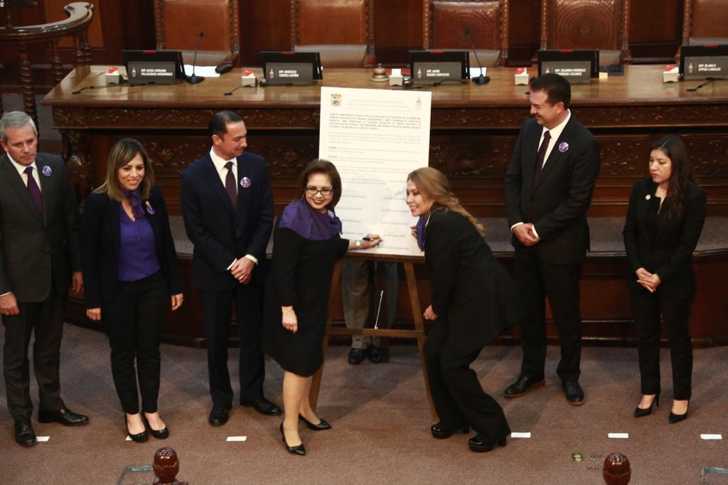 Con el firme compromiso de trabajar en unidad para garantizar los derechos humanos de las mujeres y fortalecer el marco legislativo que garantice justicia a las víctimas de violencia, las Diputadas y los Diputados integrantes del Congreso del Estado realizaron la sesión Solemne con motivo de la Conmemoración del Día Internacional de la Mujer.