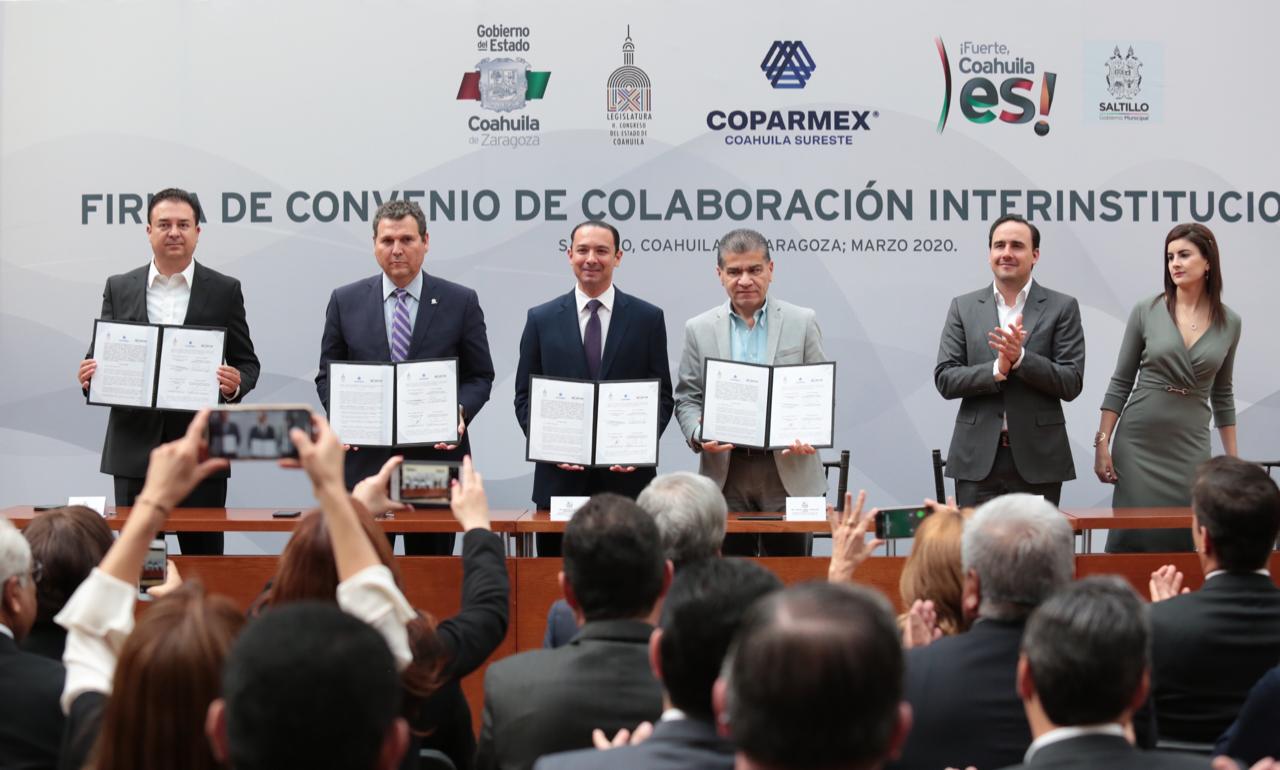 Atestigua Gobernador la firma del convenio de colaboración interinstitucional entre el Poder Ejecutivo y COPARMEX Coahuila Sureste