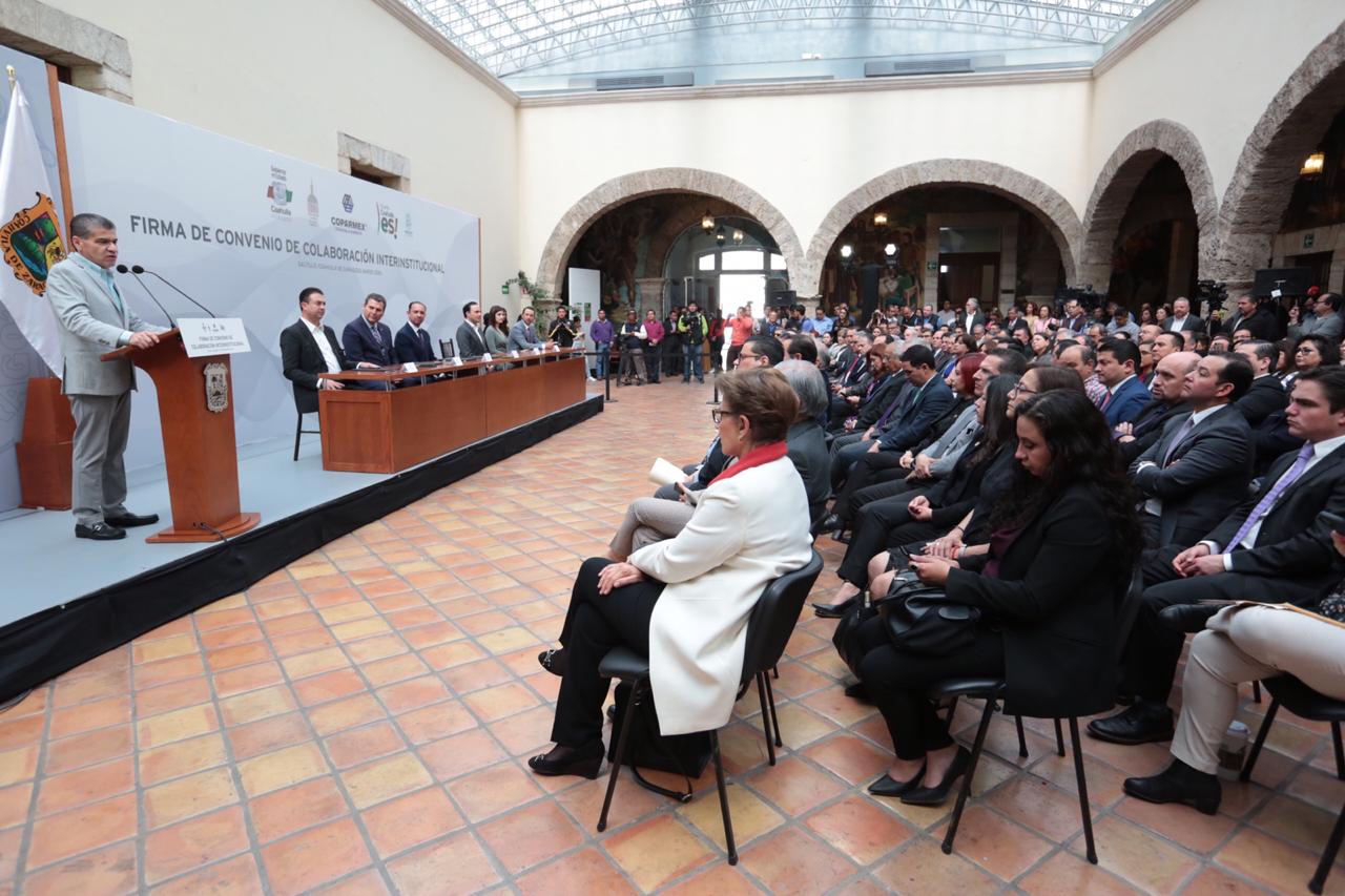 Felicitó a los firmantes del convenio, y les dijo que espera reditúe en leyes que permitan mantener la competitividad de la entidad, así como permitir que siempre esté a la vanguardia y adecuarse al entorno nacional e internacional, además de reiterar el respaldo del Gobierno del Estado.