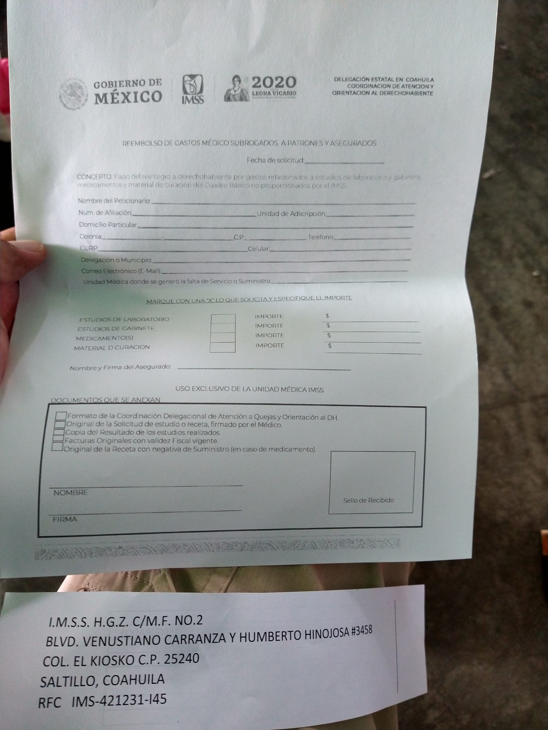 Sin embargo, señaló que para hacer efectivo dicho reembolso, se piden varios requisitos, como son el llenar un formato de reembolso de gastos médicos subrogados a patrones y asegurados, que incluye los datos del peticionario, número de afiliación, domicilio particular, CURP y unidad de adscripción.