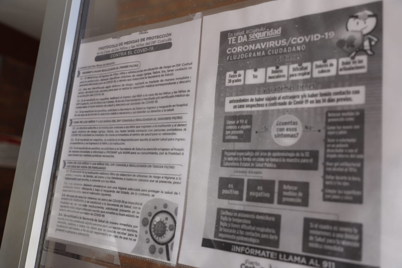 El protocolo de medidas de protección establece filtros al personal de trato directo, a los infantes de nuevo ingreso, así como familiares que visitan a las niñas y los niños en cualquiera de los centros asistenciales Casa Cuna, Albergue Varonil y Femenil de Saltillo.