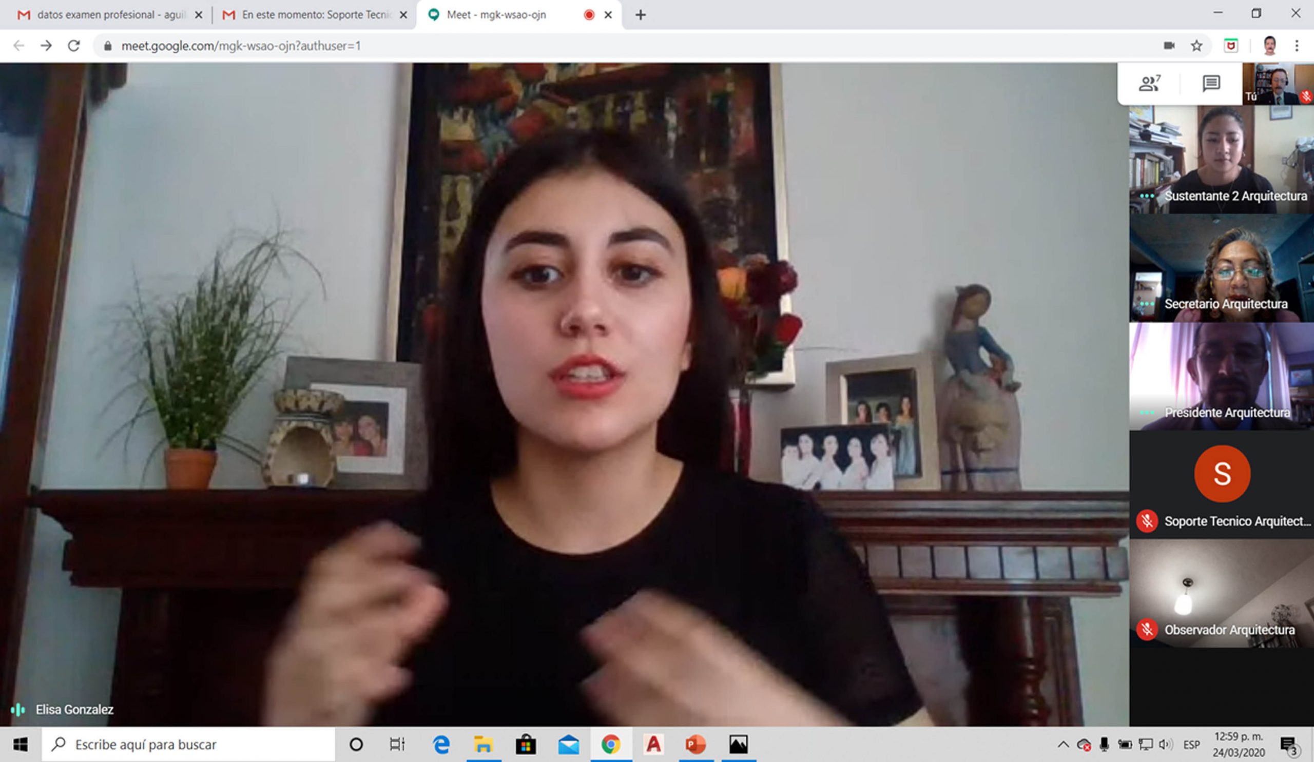 Esta herramienta digital permitió visualizar, escuchar e interactuar con facilidad, posibilitando a las sustentantes y al jurado desenvolverse de forma similar a la que se acostumbra en los exámenes presenciales. Por sus argumentos, las ahora arquitectas recibieron mención honorífica y un diploma al mérito.