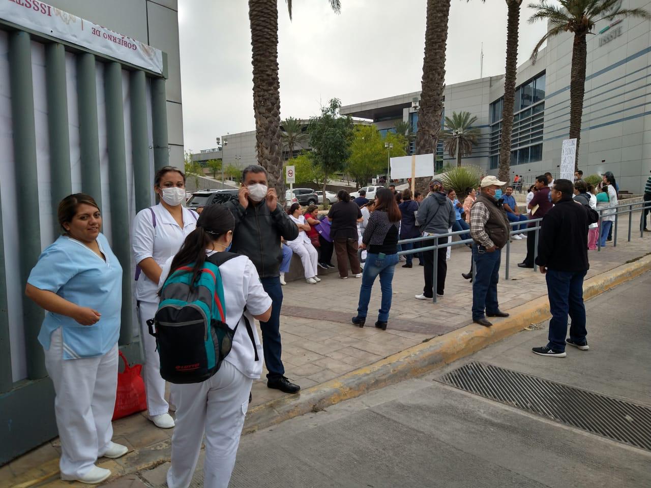 Cerca de 30 trabajadores de la salud, en su mayoría personal de enfermería del ISSSTE, se manifestaron este martes frente al Hospital General de Saltillo de esa institución, en demanda de cubre bocas, equipo de protección y otros insumos necesarios para el desempeño de sus labores durante la contingencia sanitaria causada por la propagación del coronavirus.