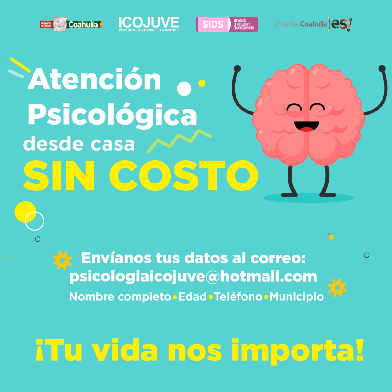 La Secretaría de Inclusión y Desarrollo Social del Estado (SIDS), a través del Instituto Coahuilense de la Juventud (ICOJUVE), suma esfuerzos con el gobernador Miguel Ángel Riquelme Solís, quien encabeza el Plan Estatal de Prevención y Control del COVID-19 para ofrecer a las y los jóvenes ayuda gratuita psicológica para sobrellevar de la mejor manera posible estas semanas de cuarentena.
