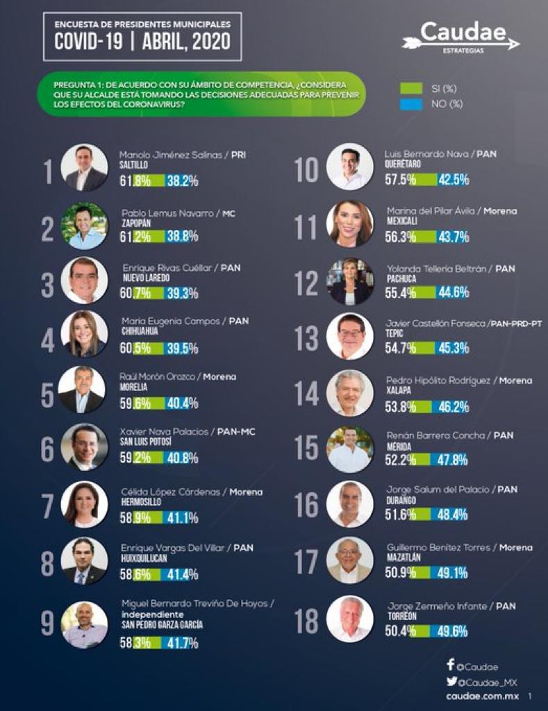 De acuerdo con una encuesta de Caudae Estrategias, el alcalde de Saltillo, Manolo Jiménez Salinas, es el mejor evaluado en el país en función a las decisiones que está tomando para prevenir los efectos del coronavirus. (EL HERALDO)