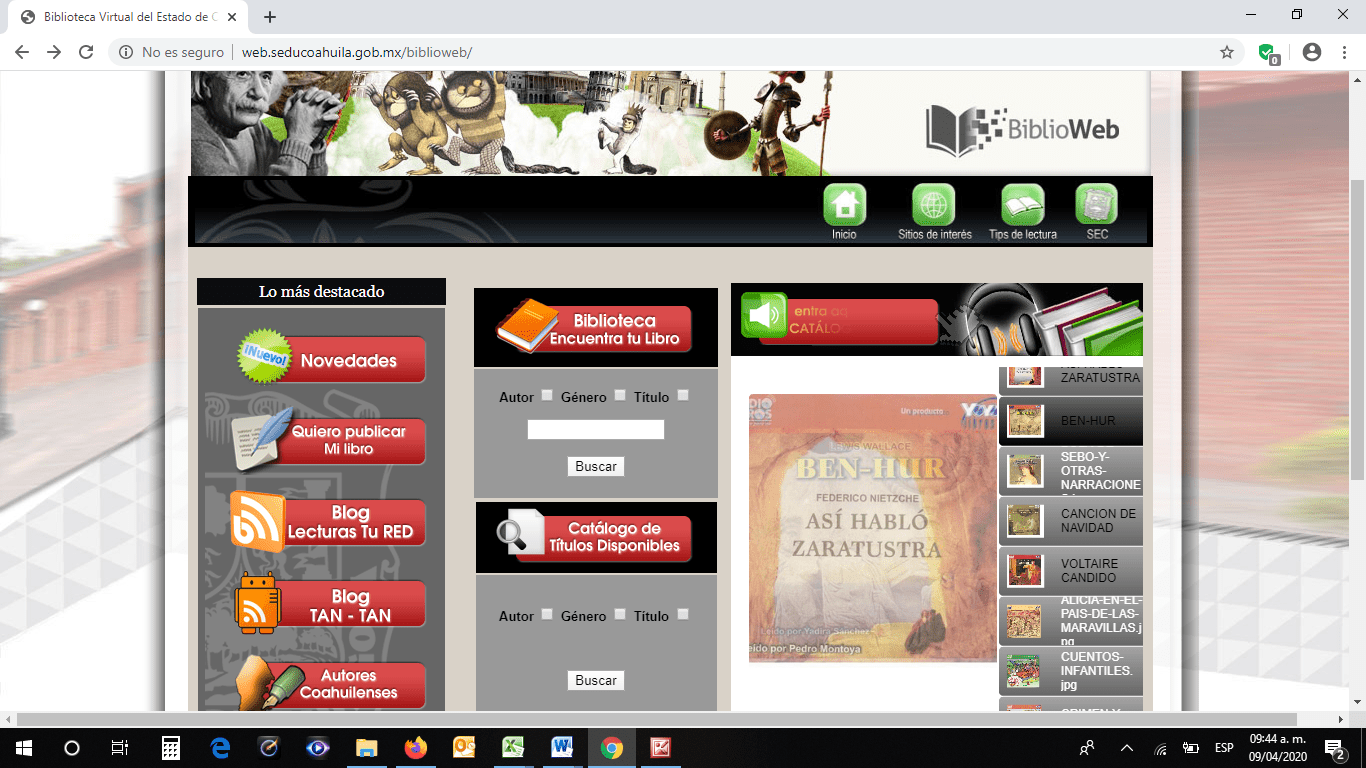 Además, en la página encontrarán el link que los llevará a web.seducoahuila.gob.mx/biblioweb en donde podrán descargar audiolibros como Alicia en el País de las Maravillas y Ana Karenina.