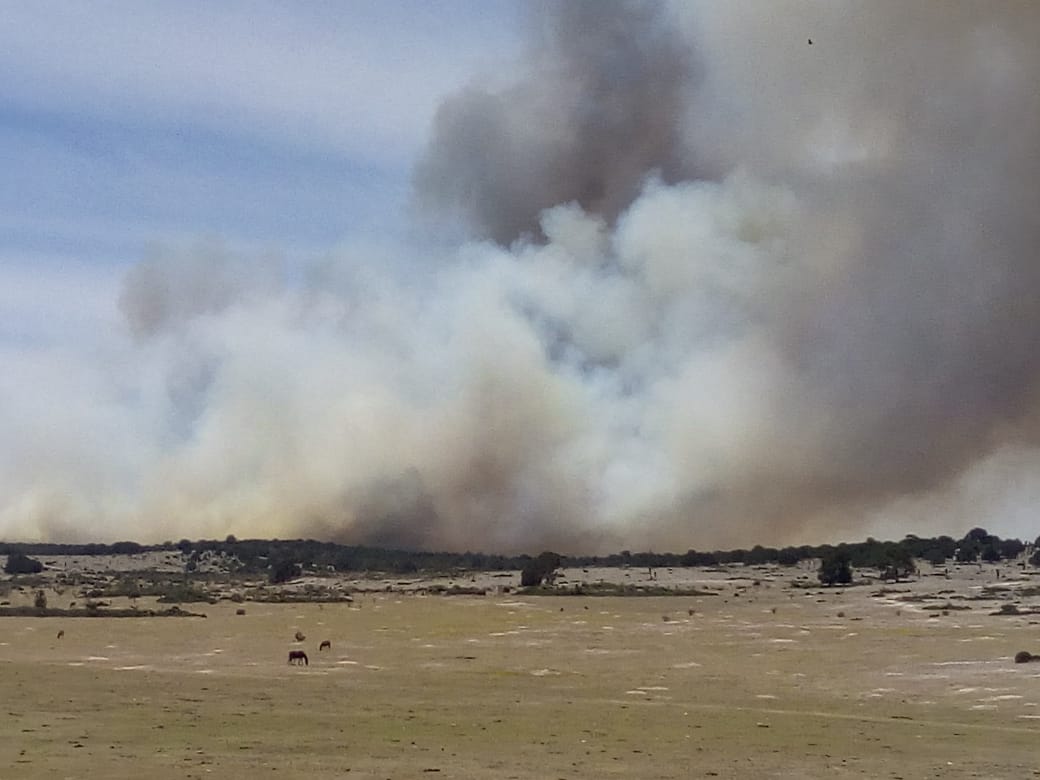 En el combate al incendio se coordinaron este lunes elementos de Ecología Municipal, de la Secretaría del Medio Ambiente, de Conafor y personal del ejido Las Hormigas.