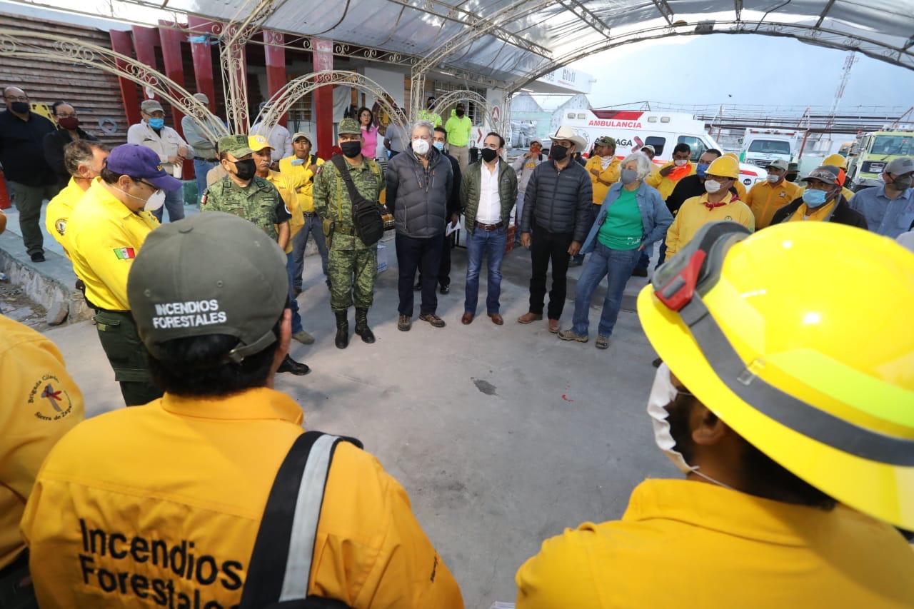 Fraustro Siller pidió a los brigadistas privilegiar la salvaguarda y la seguridad de la de todo el personal que presta ayuda en las labores para controlar el incendio.