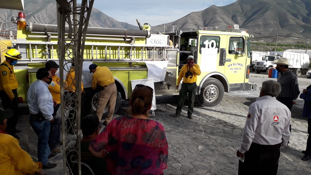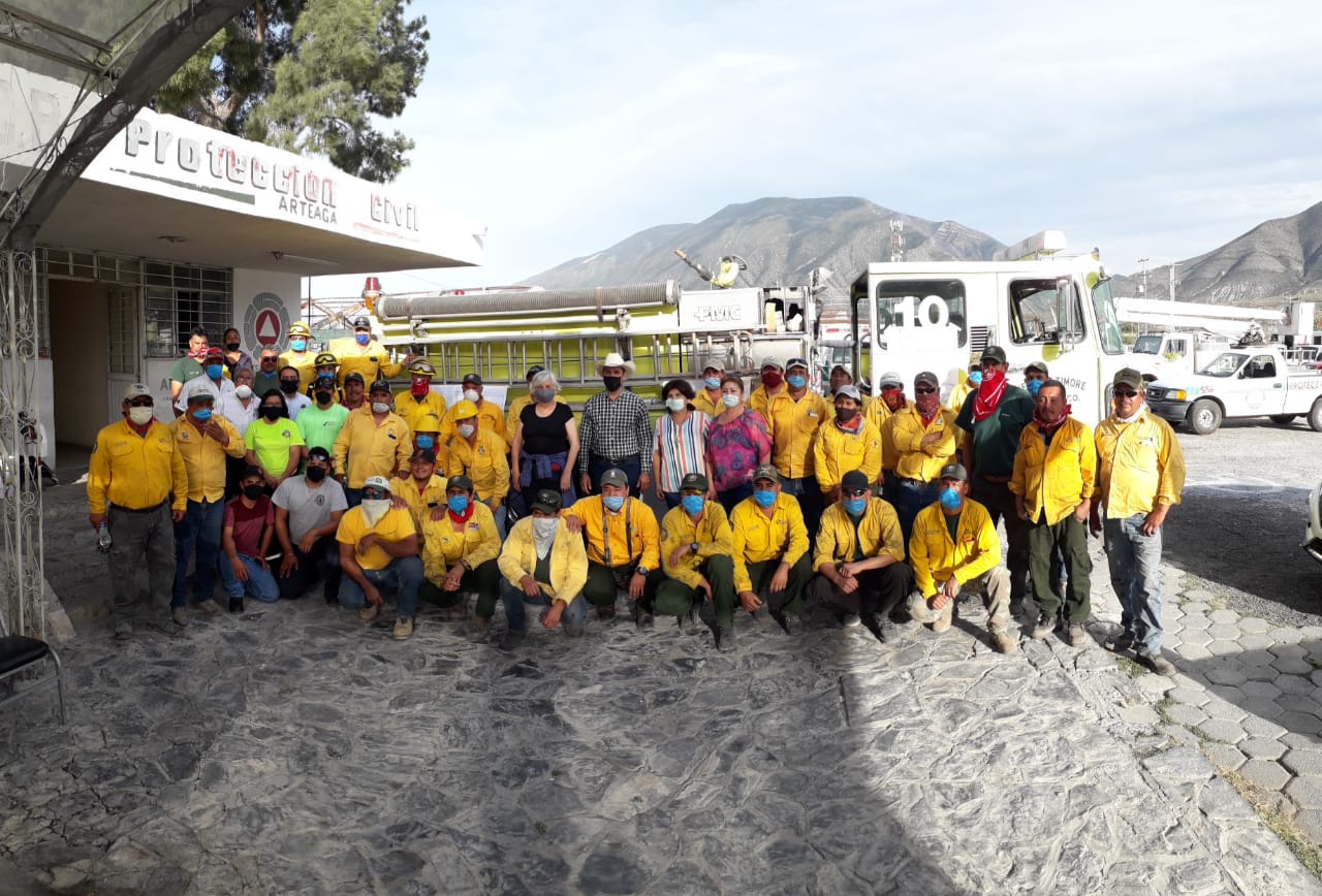 Apoyan con personal y equipo a combatientes de siniestro en Ciénega del Toro, Nuevo León.