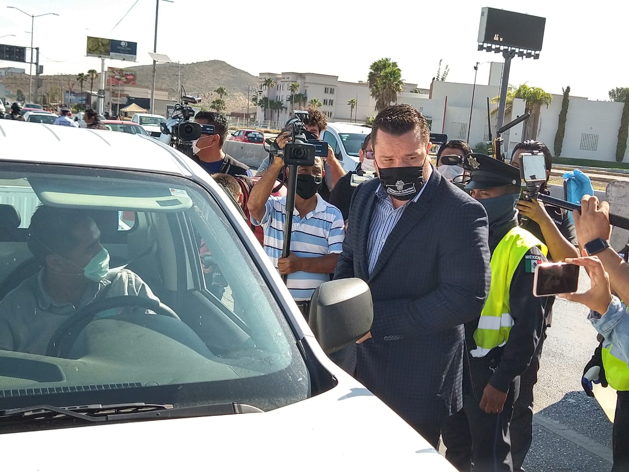 «En estos filtros, si bien es cierto que estamos obsequiando cubrebocas y aplicando gel antibacterial, también vamos a empezar a levantar un registro tanto en los filtros como en los diferentes puntos de revisión, porque si bien es cierto que hay un exhorto y una recomendación, también tenemos que si una persona no trae cubrebocas, o es reiterada su conducta en la que está transitando sin encuadrar en alguno de los supuestos por los cuales está permitido transitar, pues vamos a pasar a una segunda fase que va a ser el acompañamiento de estas personas por parte de la autoridad a sus domicilios, y si la conducta es reiterada, puede también conllevar una sanción administrativa», expuso el comisionado.