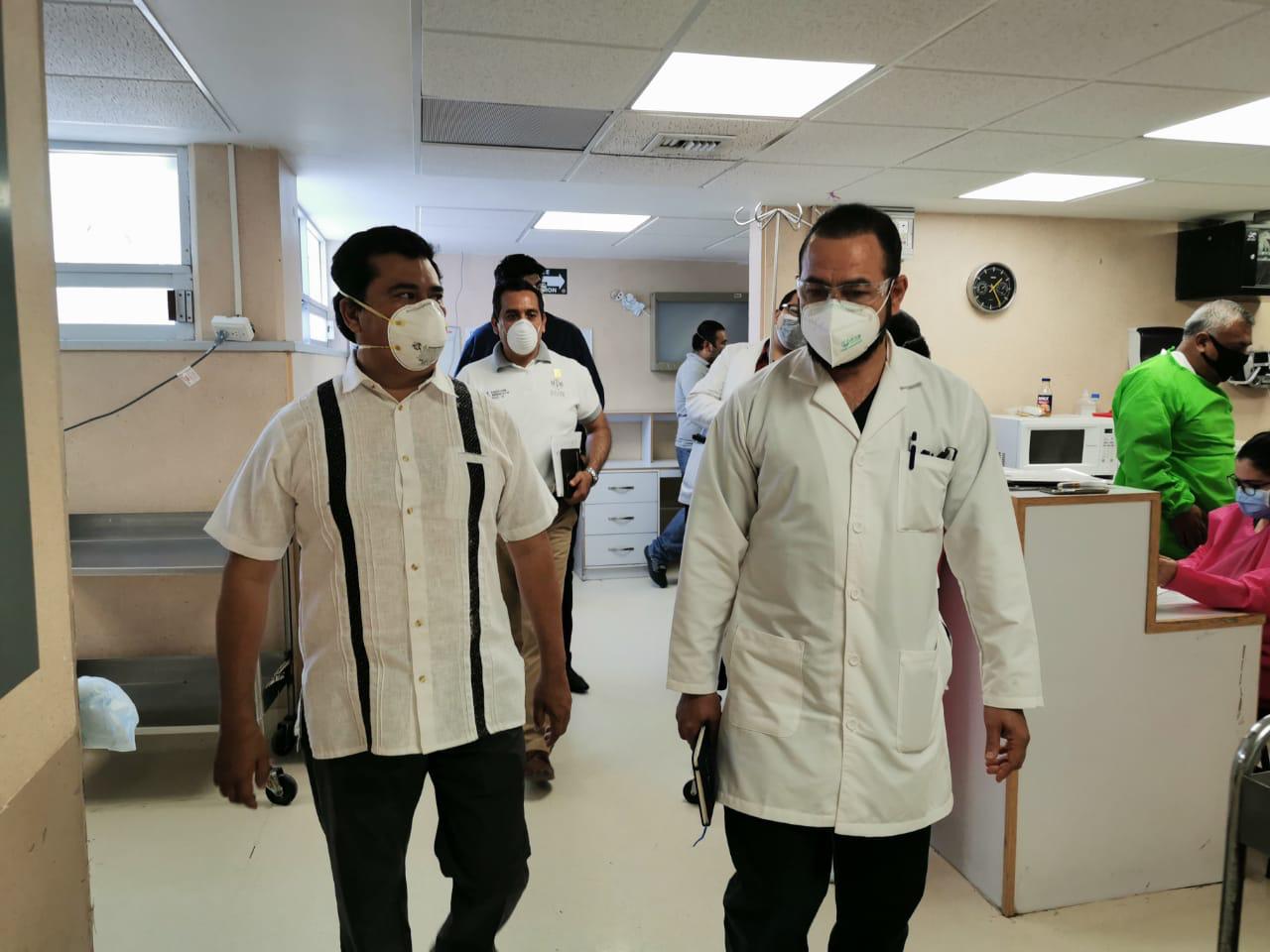 En un recorrido acompañado por el Doctor Alejandro Gómez Alvarado, Director del Hospital, supervisó que el personal médico cuente con el material necesario para cumplir con su trabajo en condiciones de seguridad y protección de su salud.