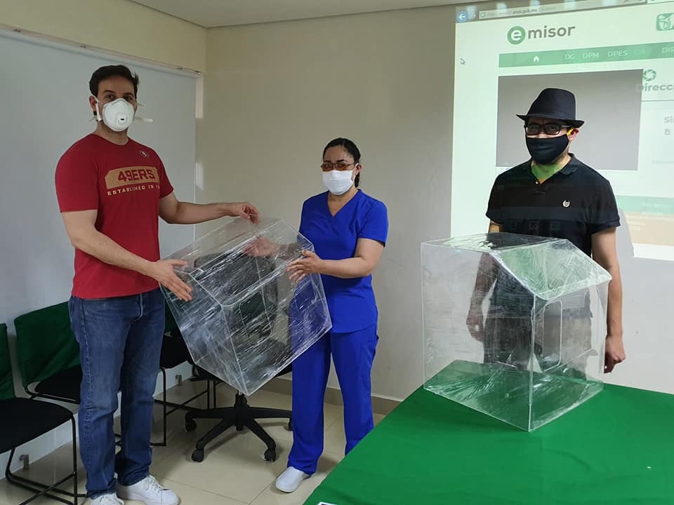 Asimismo, comentó que también fabricaron 18 cajas de acrílico para auxiliar a médicos durante la intubación de pacientes, las cuales fueron donadas a los hospitales mencionados anteriormente; agradeció a todos quienes desinteresadamente apoyan con los insumos o con donaciones para la elaboración de estos artículos.