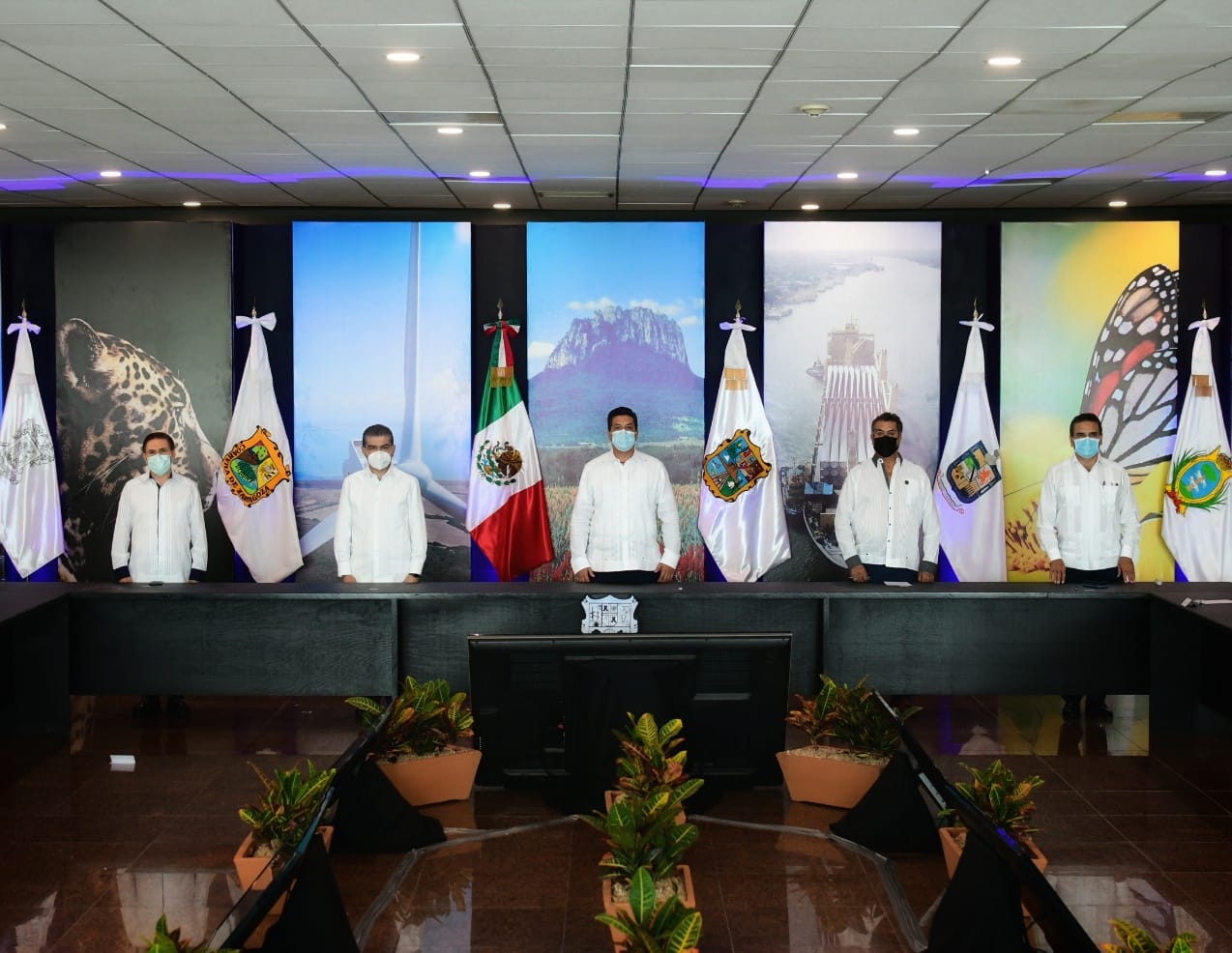 Tampico, Tamps.- Para dar seguimiento puntual a las acciones que se están llevando a cabo en materia de salud, economía y finanzas para hacer frente al COVID-19, se efectuó la Reunión Interestatal Noreste en la Ciudad de Tampico, encabezada por los gobernadores de Coahuila, Nuevo León, Tamaulipas, Durango y Michoacán.
