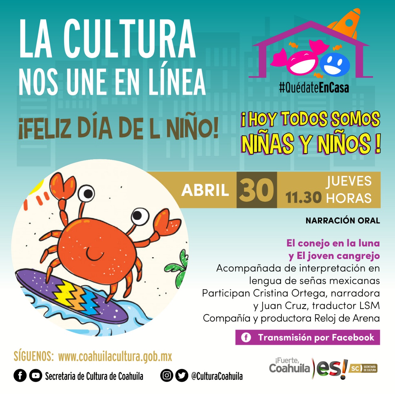 En la Secretaría de Cultura del Estado (SC) este jueves 30 de abril se festeja el Día del Niño con grandes actividades culturales desde casa, donde se privilegió la participación de niñas y niños de toda la entidad.