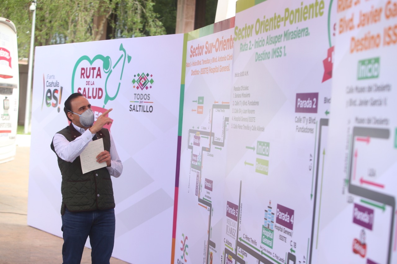 Como parte del plan de contingencia Covid-19 que impulsan el Gobernador Miguel Riquelme y el Alcalde Manolo Jiménez junto a la sociedad civil, el gobierno municipal de Saltillo anunció la “Ruta de la Salud”, que brindará un servicio de transporte exclusivo y gratuito para el personal de salud que trabaja en los 3 hospitales públicos Covid-19 de Saltillo.