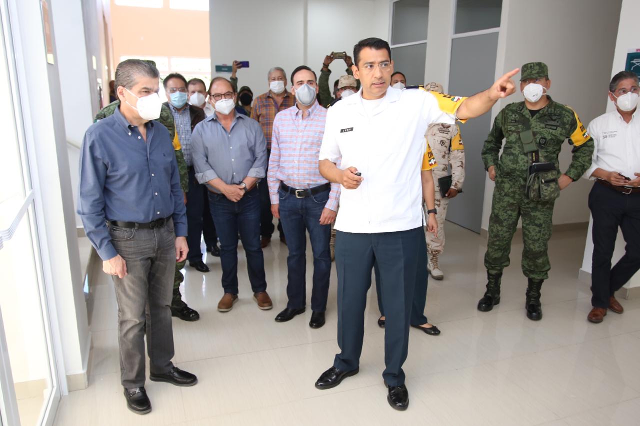 El gobernador Miguel Ángel Riquelme Solís visitó el Hospital Oncológico de esta ciudad para supervisar el avance que se lleva en la instalación del equipo médico especial, además de las acciones que se realizan de la reconversión a hospital COVID-19.