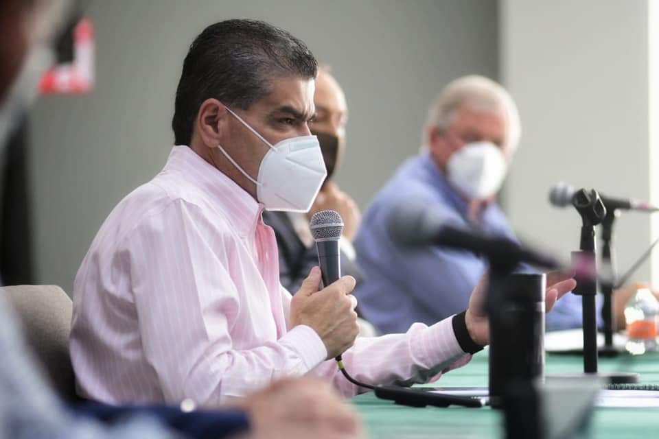 Riquelme Solís sostuvo que su obligación como gobernante es dictar las medidas correspondientes para poder proteger a las y los coahuilenses, y exhortó nuevamente a la población a aguantar las medidas de confinamiento y quedarse en casa, ya que falta poco para superar la peor parte de la pandemia.  (ÁNGEL AGUILAR)ç
