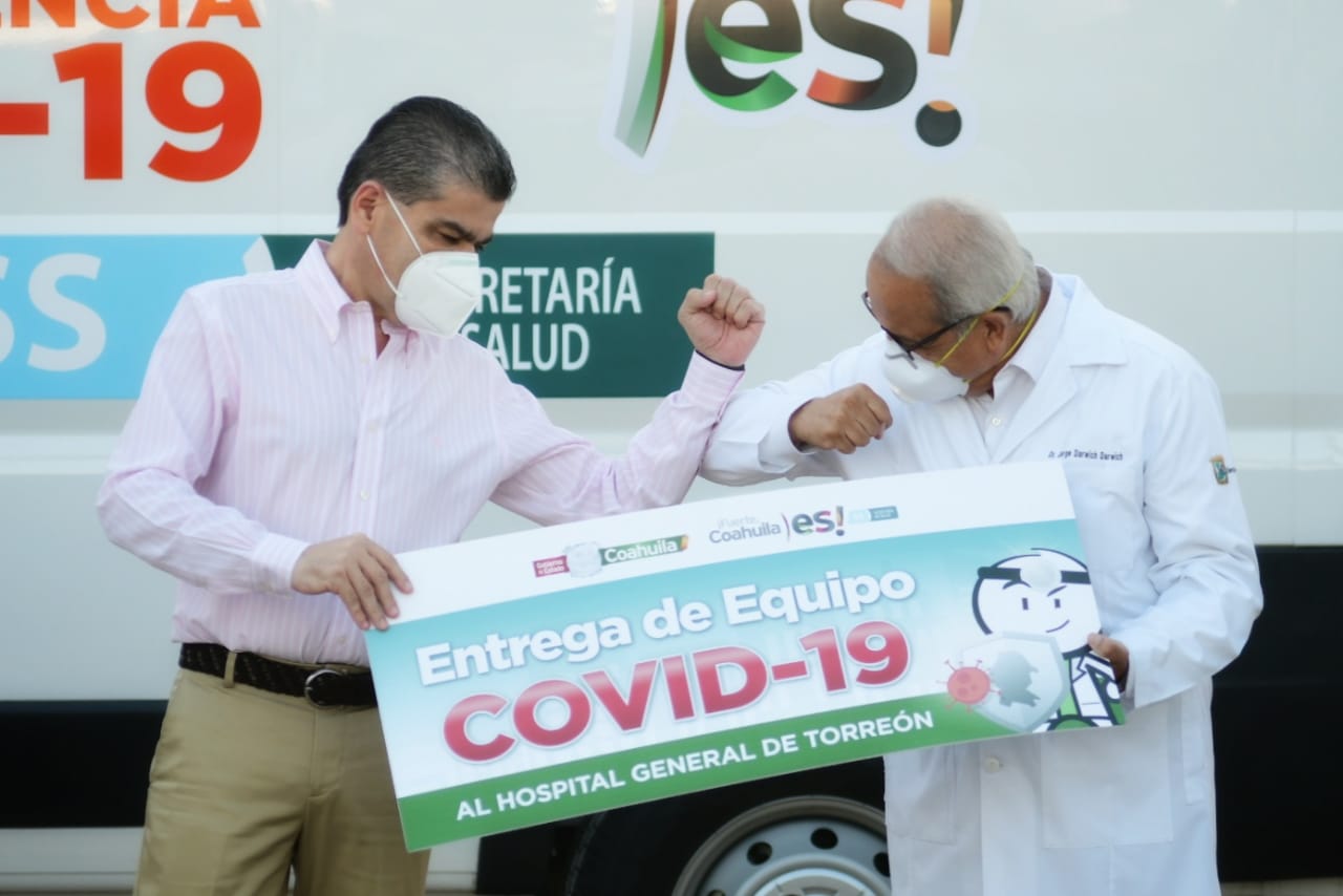 Torreón, Coahuila.- Como parte de las acciones del Plan Estatal de Prevención y Control del COVID-19, el Gobernador del Estado, Miguel Ángel Riquelme Solís, hizo entrega de una inversión de 8.5 millones de pesos para el Hospital General de Torreón.